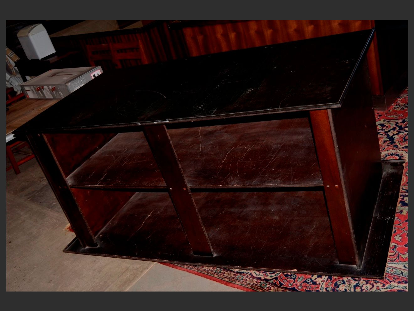 BLACK PAINTED WORK STATION, 190 x 90 x 91cm