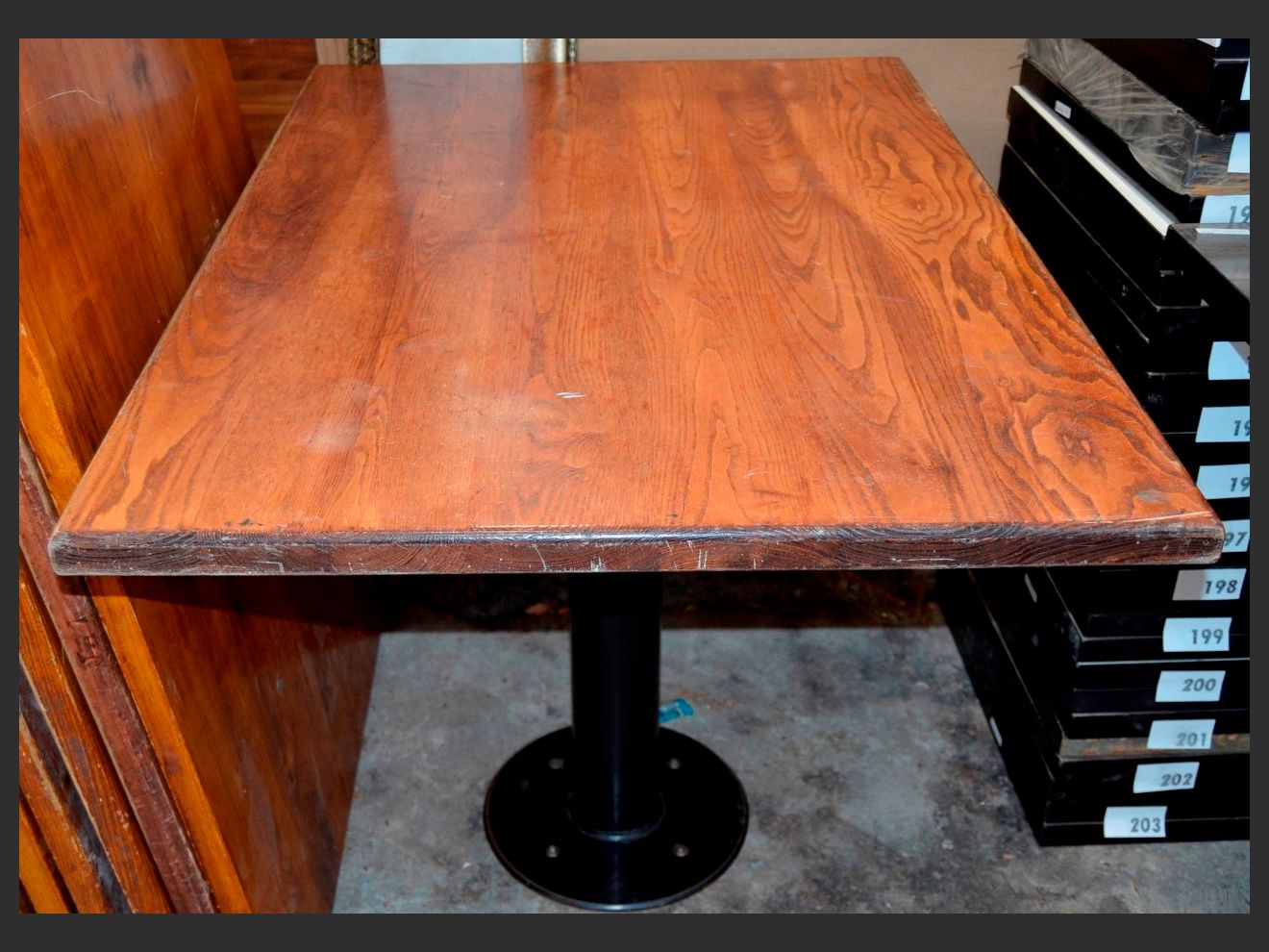 OAK RESTAURANT TABLE ON STEEL BASE, 100 x 75 x 75cm [Top needs attaching, floor mounted]