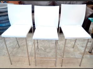 SET OF 3 WHITE PLASTIC HIGH BACK COUNTER CHAIRS, 64cm High
