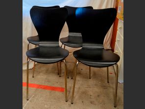 GLASS & CHROME DINING TABLE ON HAIRPIN LEGS WITH 4 BLACK PAINTED ANT STYLE CHAIRS, 160 x 90 x 74cm [Chrome rusted]