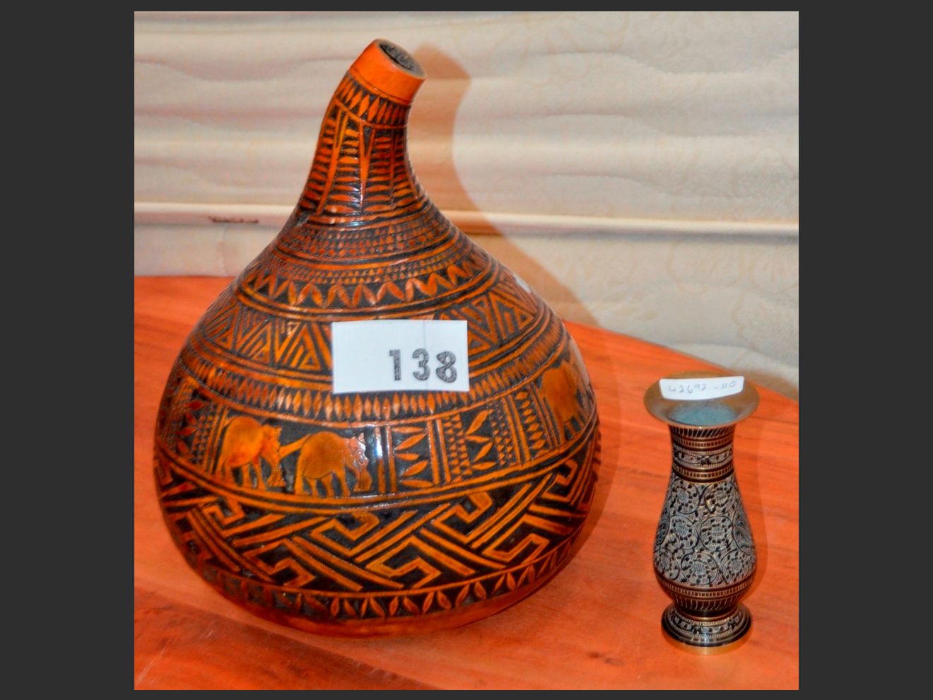 HAND DECORATED CALABASH, 33cm High, & A CLOISONNE VASE, 14.5cm High