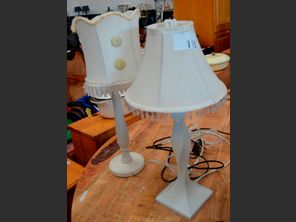 LOT: 2 x WHITE PAINTED BEDSIDE LAMPS WITH SHADES, 56cm High & 51cm High