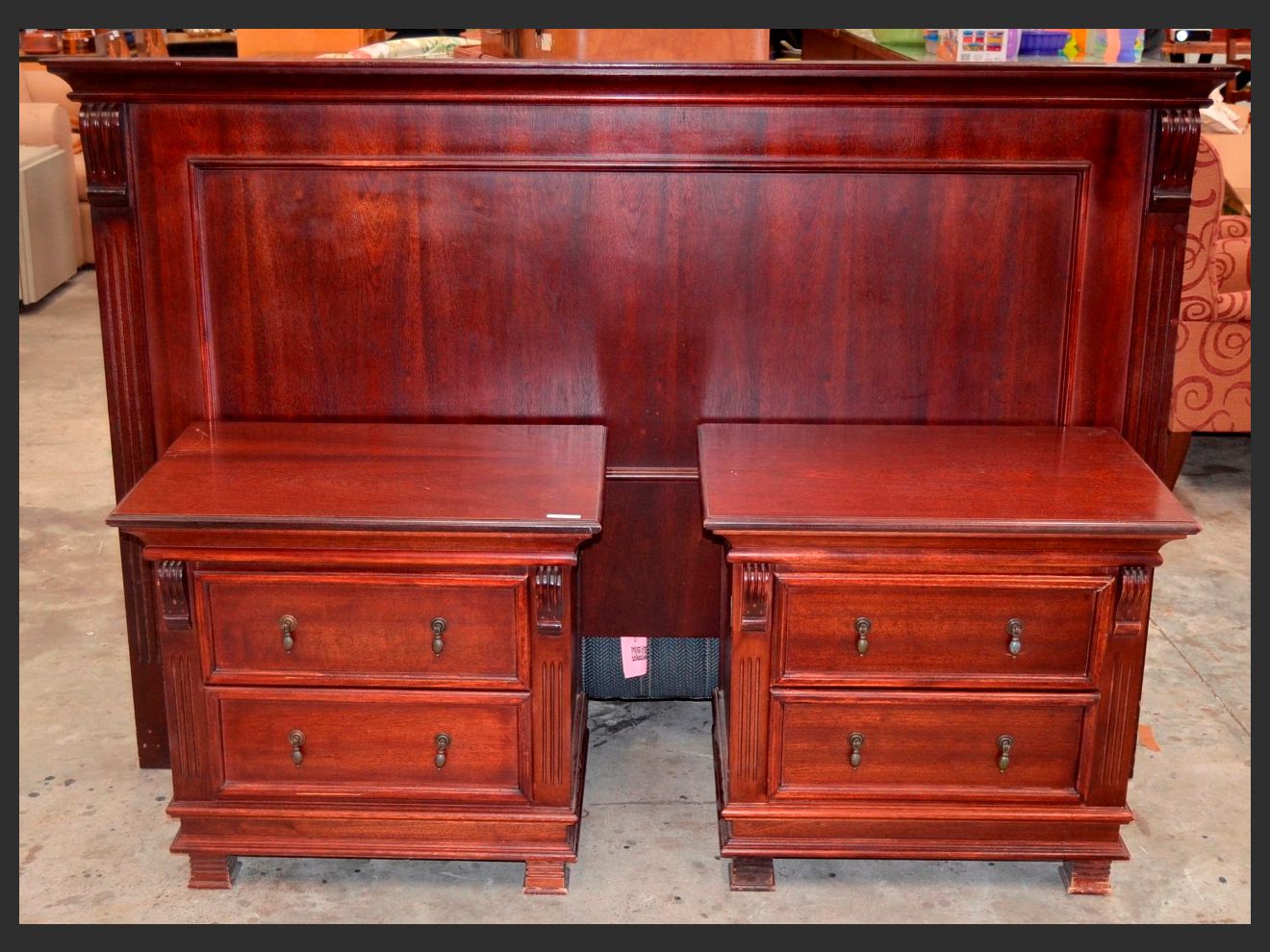 MAHOGANY QUEEN SIZE HEADBOARD WITH PAIR MATCHING PEDESTALS, 68 x 45 x 62cm