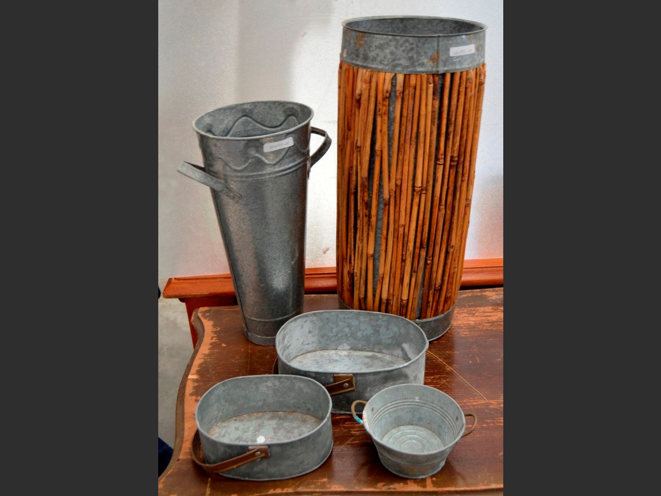 GALVANISED UMBRELLA STAND, VASE, etc