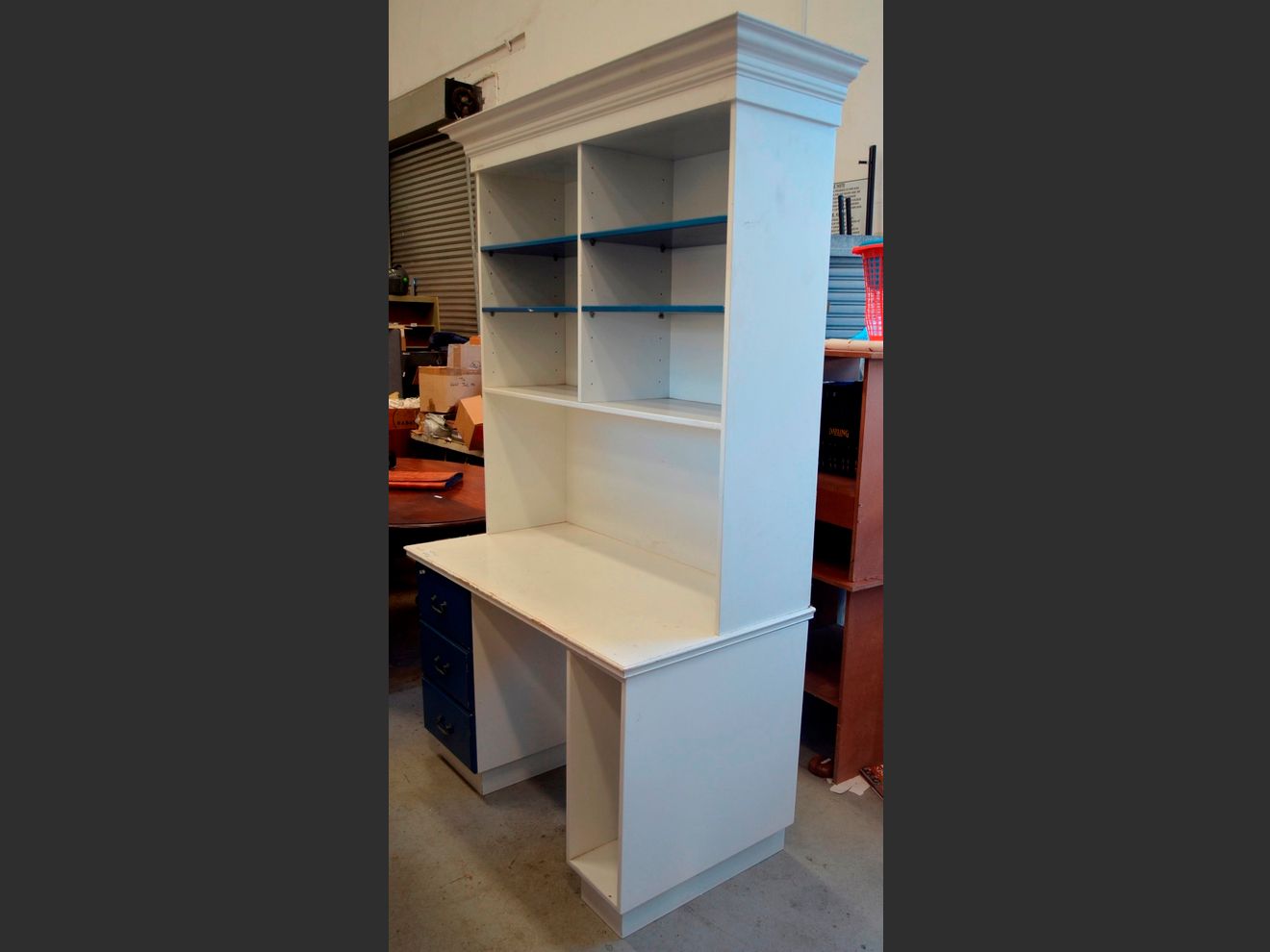 WHITE & BLUE 3-DRAWER STUDENT'S DESK WITH BOOKSHELF ATTACHED, 121 x 63 x 206cm