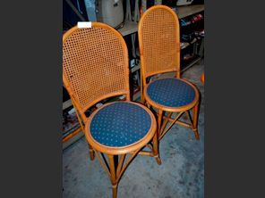 SET OF 2 CANE & RATTAN ARMCHAIRS [Small hole to rattan on 1 chair]