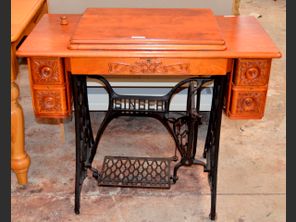 VINTAGE SINGER SEWING MACHINE IN CABINET ON CAST IRON BASE, 92 x 46 x 76cm