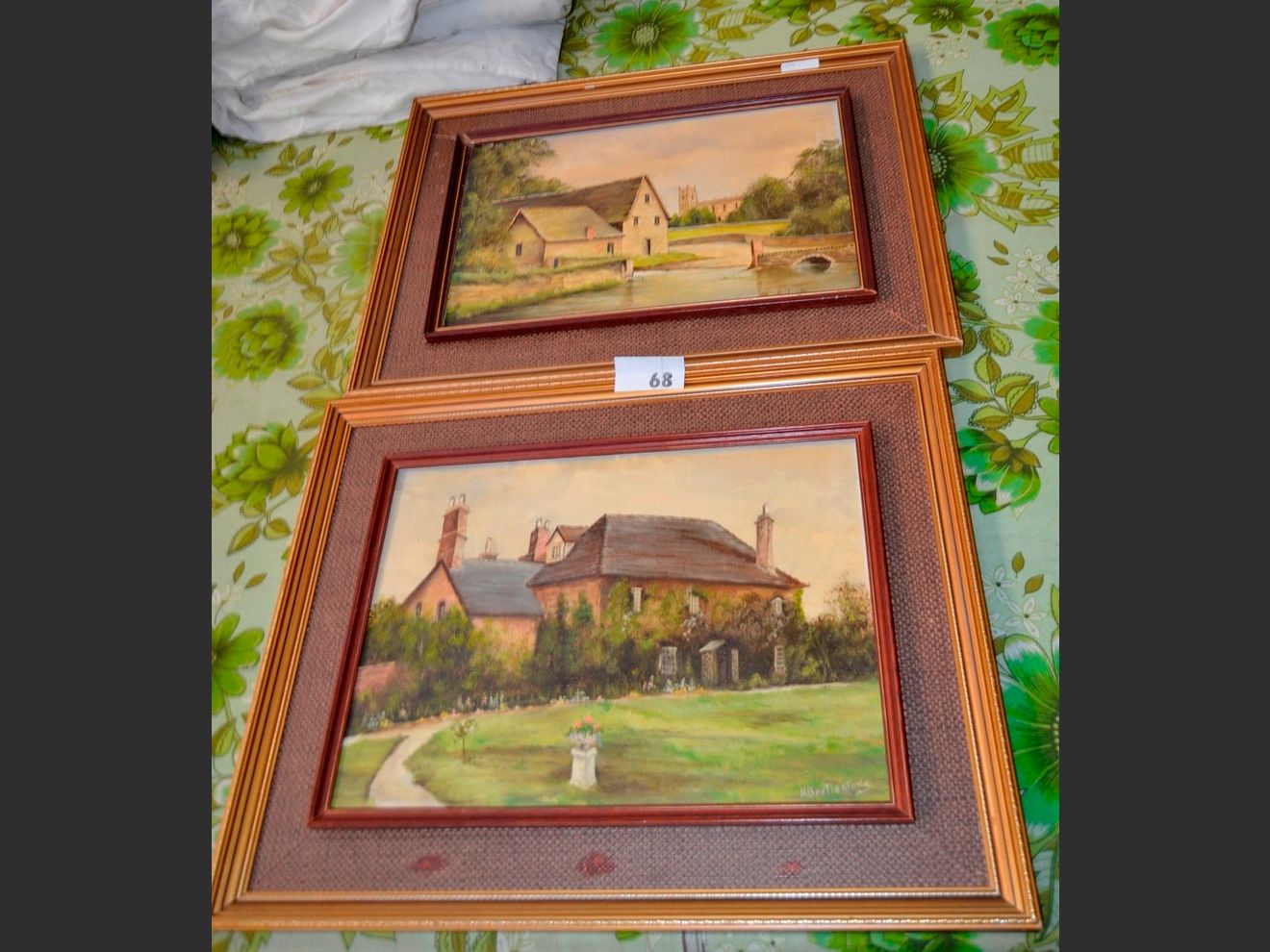 LOT OF 2 GILT FRAMED OILS ON BOARD: "HOUSES" BY H. BEETLESTONE, 45.6cm x 29cm & 44.5 x 32cm [302,395]